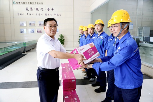 7月23日,集團公司副總經理江峰前往六國化工公司、華興化工公司開展高溫慰問送清涼活動。